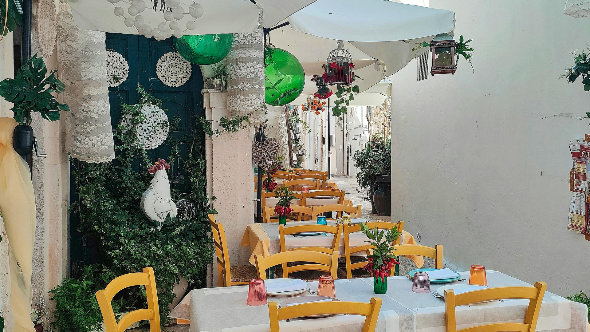 Osteria Luce (Oria) – Nel cuore della città medievale di Oria, questa piccola osteria è un angolo di pura poesia gastronomica. I tavoli in legno, l’illuminazione soffusa e il profumo del pane caldo creano un’atmosfera intima. I piatti? Un equilibrio perfetto tra tradizione e creatività: orecchiette fatte a mano condite con ricotta forte, polpo in pignata cotto lentamente fino a diventare burroso, dolci caserecci che sanno di casa.